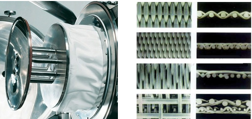 ? 濾布安裝時應將兩邊的密封唇布用隨機配的濾布密封圈嵌入在轉鼓密封槽中(對于下卸料或刮刀卸料離心機配置的濾片而言),不得有密封失效處,以防跑料,引起離心機振動。